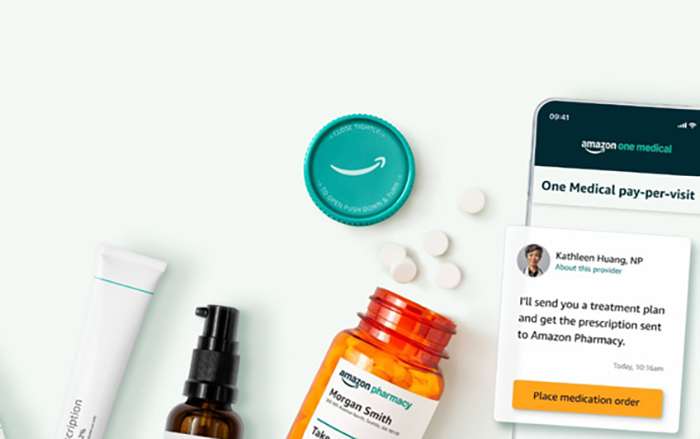 Desde 2018, a Amazon vem fazendo investimentos no setor de saúde dos EUA por meio de aquisições como a PillPack, uma farmácia de serviço completo, e introduzindo novas ofertas como a Amazon Care e a Amazon Pharmacy. Em fevereiro de 2023, a Amazon