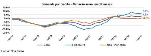 A demanda por crédito do consumidor avançou 7,2% no 1º trimestre contra o mesmo período do ano anterior, de acordo com dados nacionais da Boa Vista. Considerando dados dessazonalizados, o indicador evoluiu 0,7% em março. No acumulado em 12 meses, o indicador cresceu 3,3%.