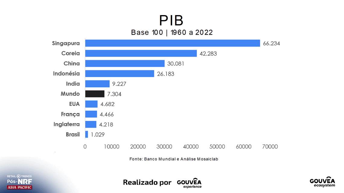 Os quadros comparativos tornam eloquente o descompasso do Brasil ante uma amostra com outros países e reforçam, para além do problema que nos atinge, o fato de que o mundo ocidental também enfrenta um quadro de perda de protagonismo no cenário global, dado o acelerado e consistente processo de transformação e evolução que se vive na Ásia, que temos mostrado e com o qual temos nos conectado de forma constante.