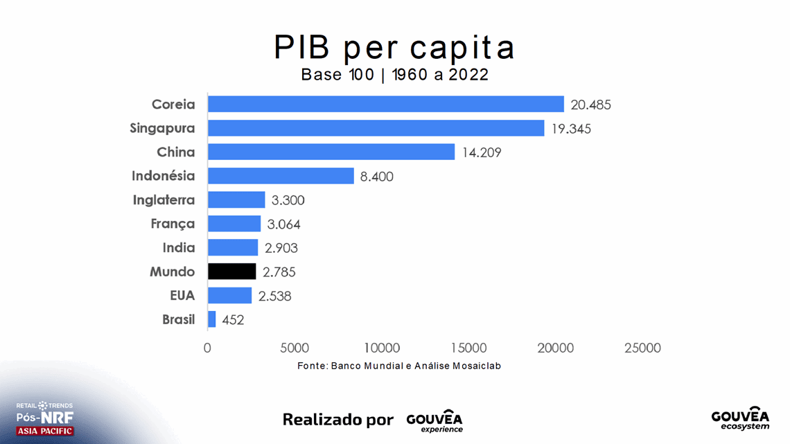 Os quadros comparativos tornam eloquente o descompasso do Brasil ante uma amostra com outros países e reforçam, para além do problema que nos atinge, o fato de que o mundo ocidental também enfrenta um quadro de perda de protagonismo no cenário global, dado o acelerado e consistente processo de transformação e evolução que se vive na Ásia, que temos mostrado e com o qual temos nos conectado de forma constante.