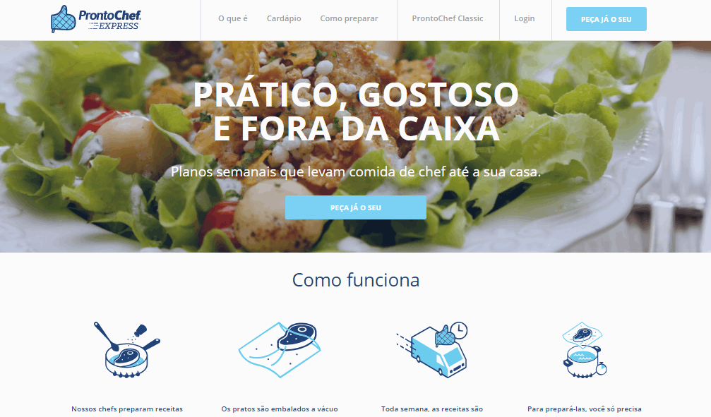 O ProntoChef está no mercado desde meados de 2015, quando lançou a sua linha Classic, um kit semanal com receitas e todos os ingredientes na medida certa para cozinhar rápido em casa, com a opção do cardápio gourmet ou fitness.