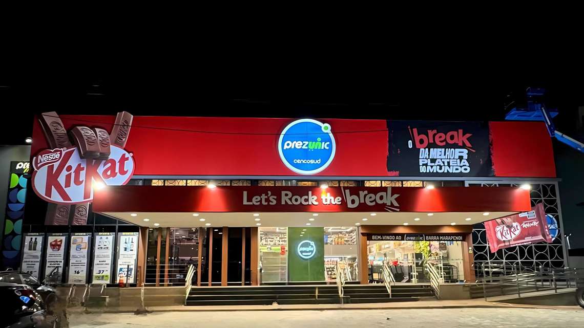 Prezunic e Nestlé se uniram para transformar a fachada da loja Marapendi, na Avenida das Américas, nº 4245, no Rio de Janeiro, em um imenso KitKat, uma das marcas da companhia suíça. A ação de retail media, iniciada na sexta-feira, 30, é realizada pela Cencosud Media, braço de retail media da Cencosud Brasil, e pode ser conferida até 24 de setembro.