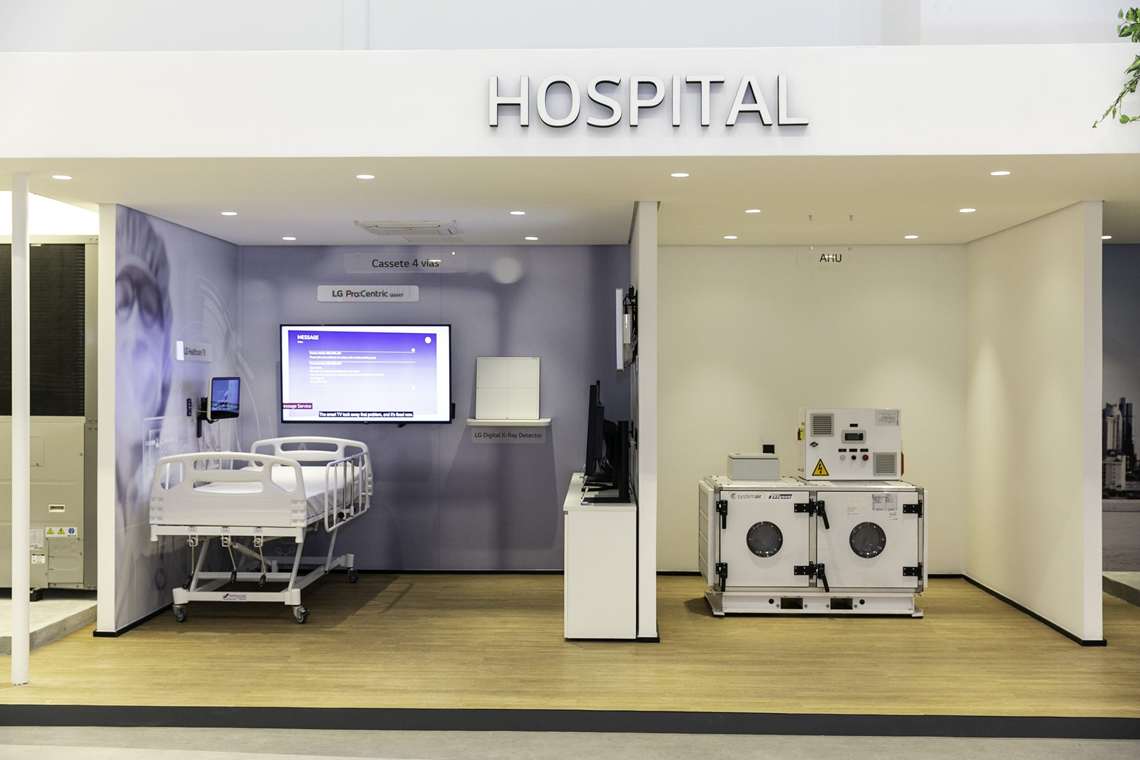 O espaço possui mais de dez estandes divididos entre soluções para hotéis, hospitais, educação, varejo, salas de reunião e aeroportos, onde estão em funcionamento ares-condicionados comerciais, telas profissionais, painéis interativos e monitores médicos, assim como novidades tecnológicas da marca.