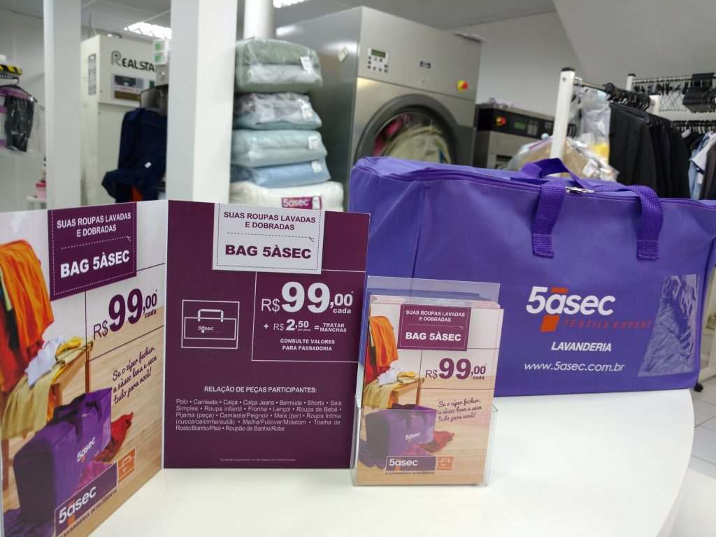 A rede de lavanderias 5àsec aposta em um novo serviço de lavagem e secagem de peças do dia a dia por R$99. Trata-se da BAG 5àsec, que tem como slogan “Se o zíper fechar, a 5àsec lava e dobra tudo para você”, a marca espera aumentar o volume de vendas em 16% e o faturamento das lojas em 10%.
