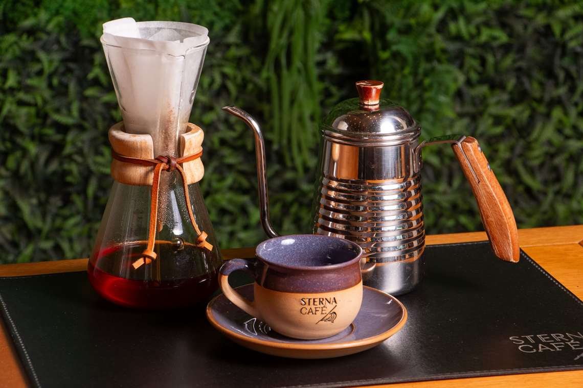 Outro ponto central da experiência Sterna Café é a seleção dos grãos. A rede oferece seis métodos de extração – Chemex, Aeropress, French Press, V60, Koar e Clever – que são combinados com diferentes moagens e tempos de infusão. A rede também utiliza xícaras produzidas artesanalmente, criando um ambiente que celebra a cultura do café.