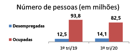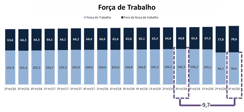 Dessa forma, o indicador de desemprego medido pelo IBGE está tirando da sua base de cálculo mais de 9,7 milhões de pessoas que estão desocupadas, mas que temporariamente deixaram a força de trabalho.