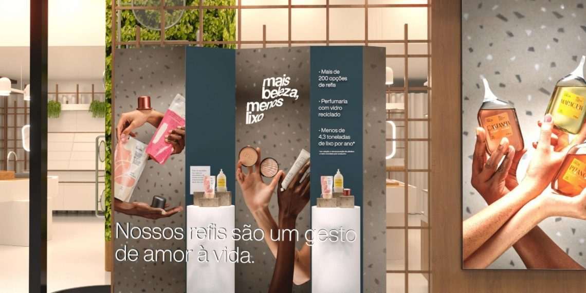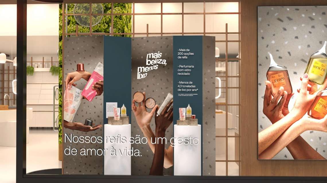 A Natura transformou a vitrine de sua loja-conceito, na Oscar Freire, em São Paulo, para comunicar a campanha de loja ‘Mais beleza e Menos Lixo’, que tem como objetivo dar visibilidade para os programas sustentáveis levantados pela marca.