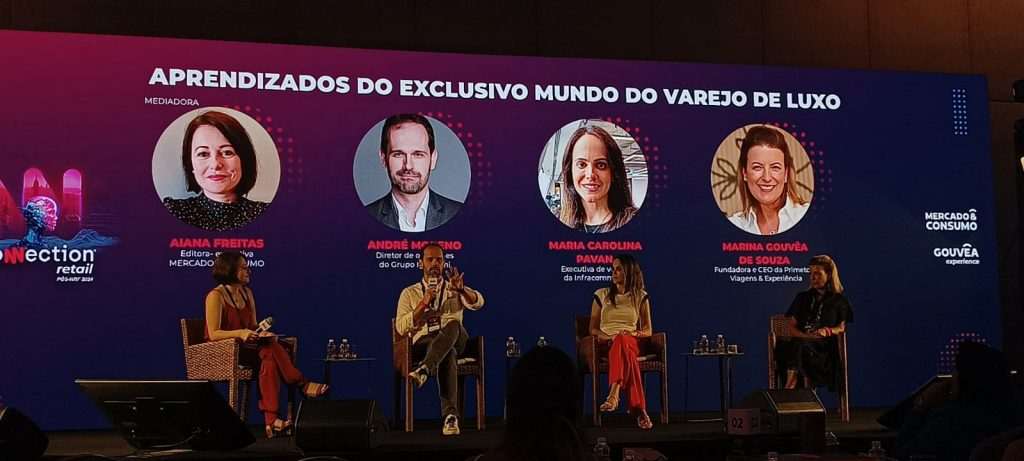 A executiva da Primetour participou do painel “Aprendizados do mundo exclusivo do varejo de luxo” ao lado de André Moreno, diretor de Operações do Grupo Iguatemi, e de Maria Carolina Pavan, executiva de Vendas da Infracommerce. A palestra foi mediada por Aiana Freitas, editora-executiva da MERCADO&CONSUMO, no segundo do dia do Connection Retail, evento realizado pela empresa jornalística no Guarujá, litoral paulista.