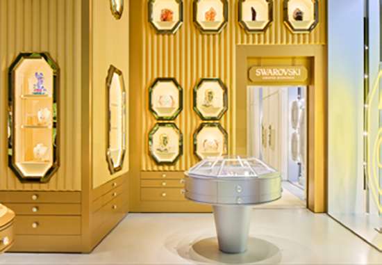 A flagship apresenta uma exibição pioneira no mundo de cristais e pedras preciosas da Swarovski em vários tamanhos, cores e efeitos, bem como uma “store-in-store” exclusiva para a coleção Swarovski Created Diamonds, oferecendo uma experiência de compra VIP centrada em diamantes sintéticos certificados e cultivados em laboratório.