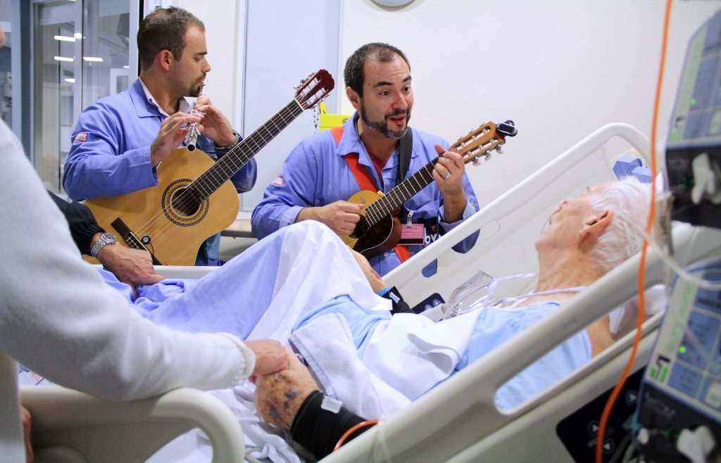 Durante as visitas da instituição aos hospitais, são realizadas atividades por arte-educadores, especializados nas linguagens da contação de histórias e música, com o objetivo de ressignificar o momento que os pacientes estão vivendo.