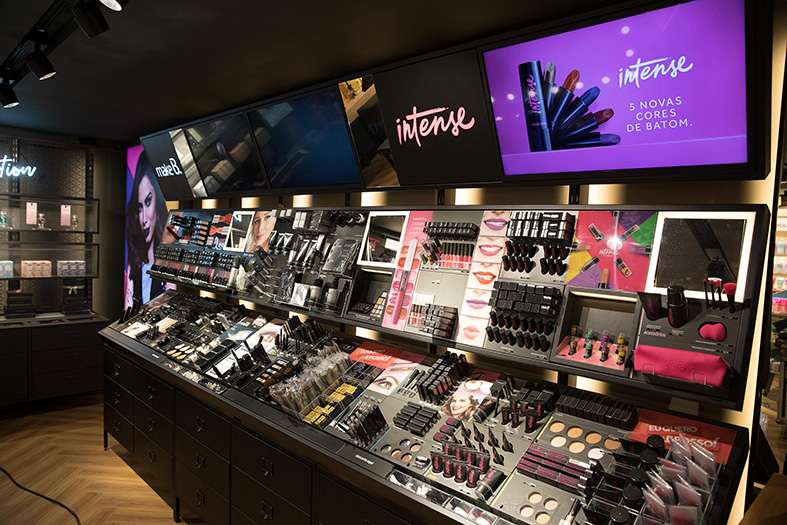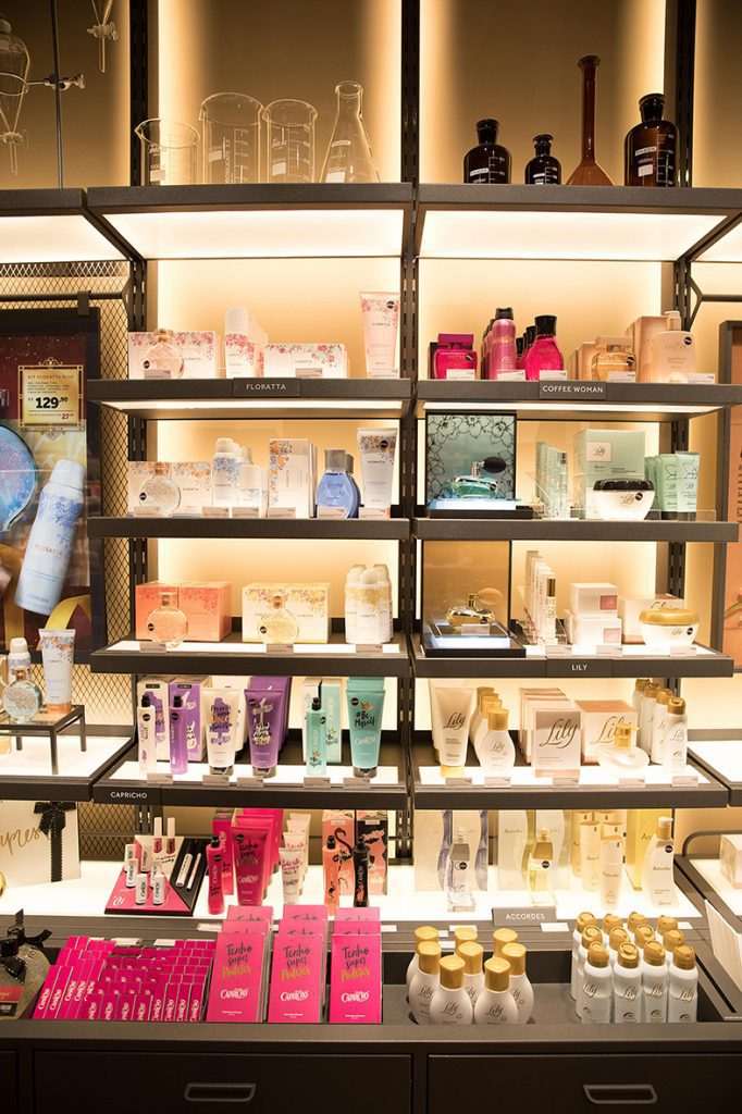 As diferenças começam já na fachada. A ânfora, ícone da marca e da perfumaria nacional, ganha destaque em um gradil criado exclusivamente para o novo projeto. No interior, área de experimentação de todo o portfólio da marca, com destaque para a bancada de maquiagens, ainda maior do que nas demais lojas.