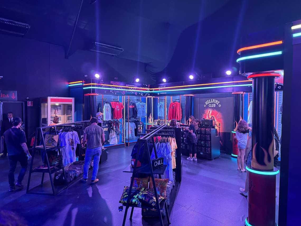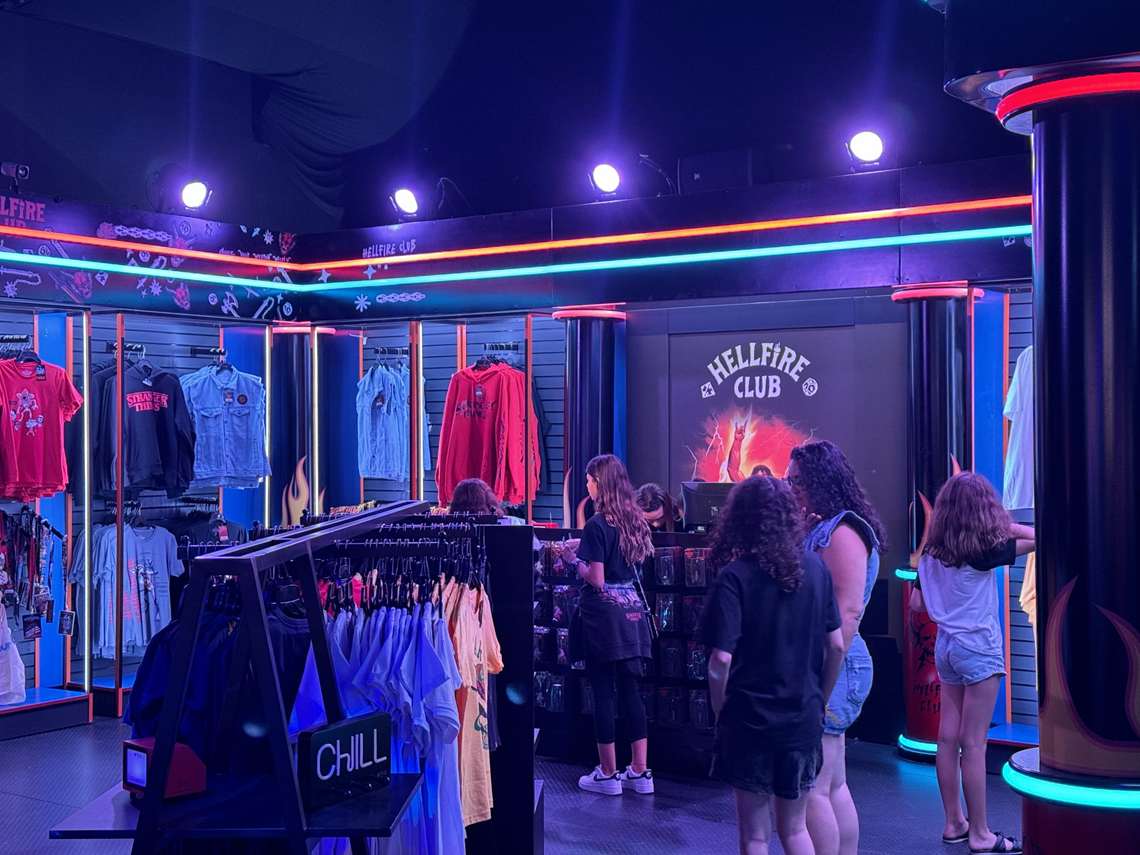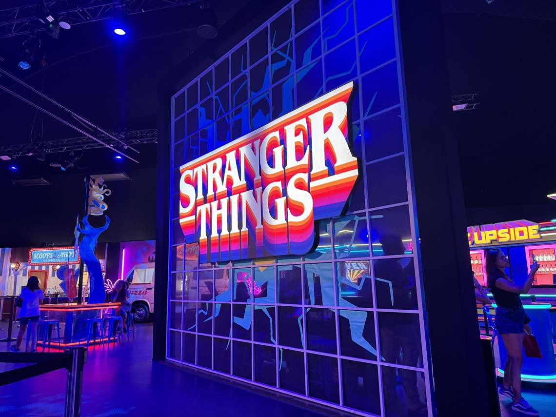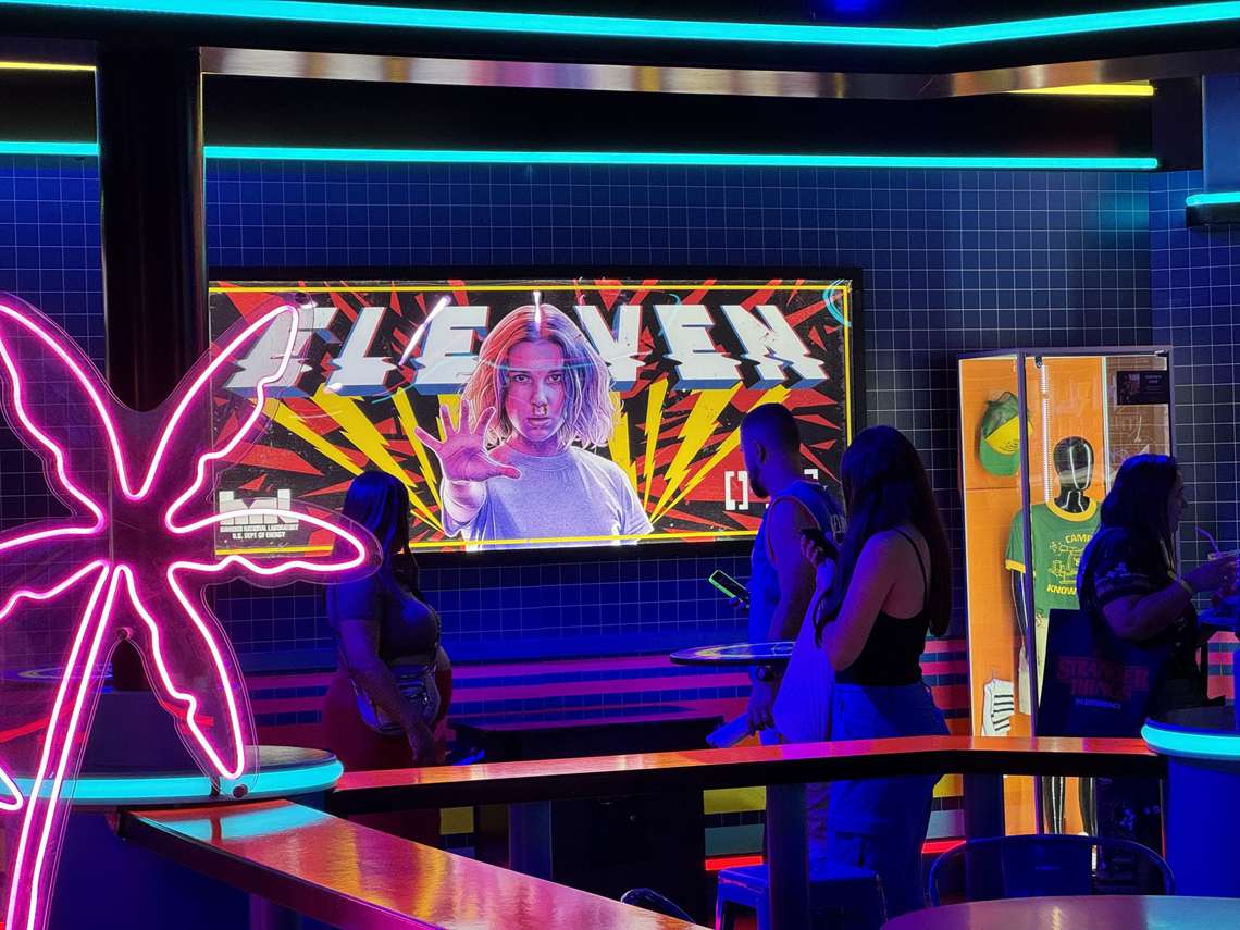 Ao som de uma playlist com os clássicos da década, o visitante pode consumir o sundae de caramelo da Scoops Ahoy, fatias de pizza da Surfer Boy Pizza e os coquetéis do bar temático. Como diversão, o desafio é bater o recorde de Mad Max no fliperama Palace Arcade. Para as compras, há um espaço com produtos exclusivos e originais de Stranger Things. Todos os serviços são cobrados à parte.
