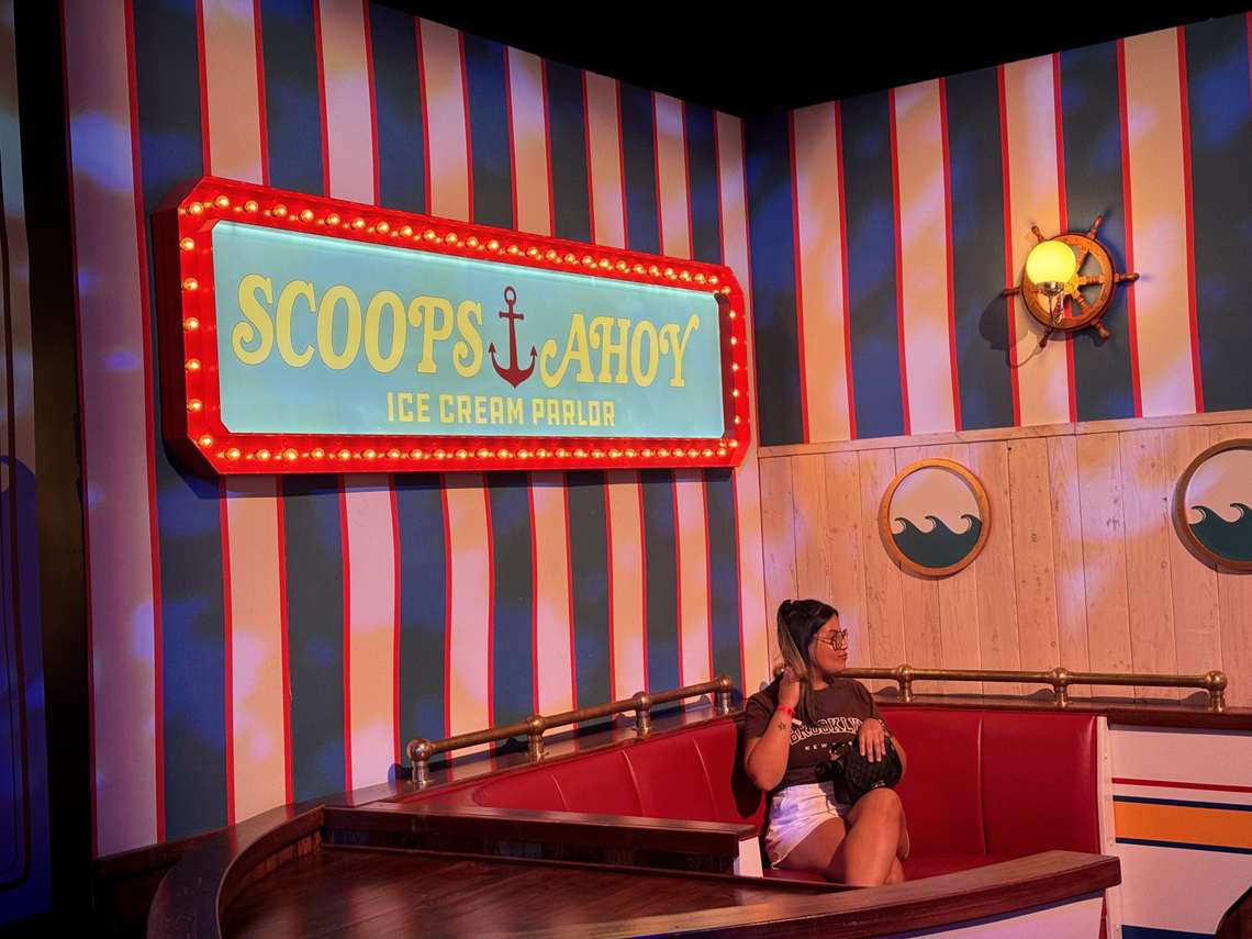 A narrativa flui sem ruídos até o final da experiência. Um dos exemplos do cuidado com a curadoria, é a inclusão do waffle na sorveteria, que não havia em outras exposições. José Franco insistiu para inserir o snack, já que uma das personagens é obcecada por ele. “Tinha que ter. Não é só um produto. O fã sabe da conexão do waffle. Quando ele vai lá e pode comer, passa a ser muito mais do que simplesmente uma refeição. É parte da experiência toda”, comenta.