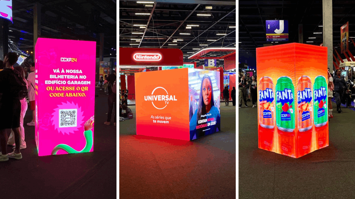 A novidade integra cubos de LED espalhados estrategicamente pelo espaço de 115 mil metros quadrados, exibindo anúncios de marcas como YouCom, Amigos do Bem e Smiles, que, apesar de não contarem com estandes, encontraram nessa solução uma forma de marcar presença no evento.