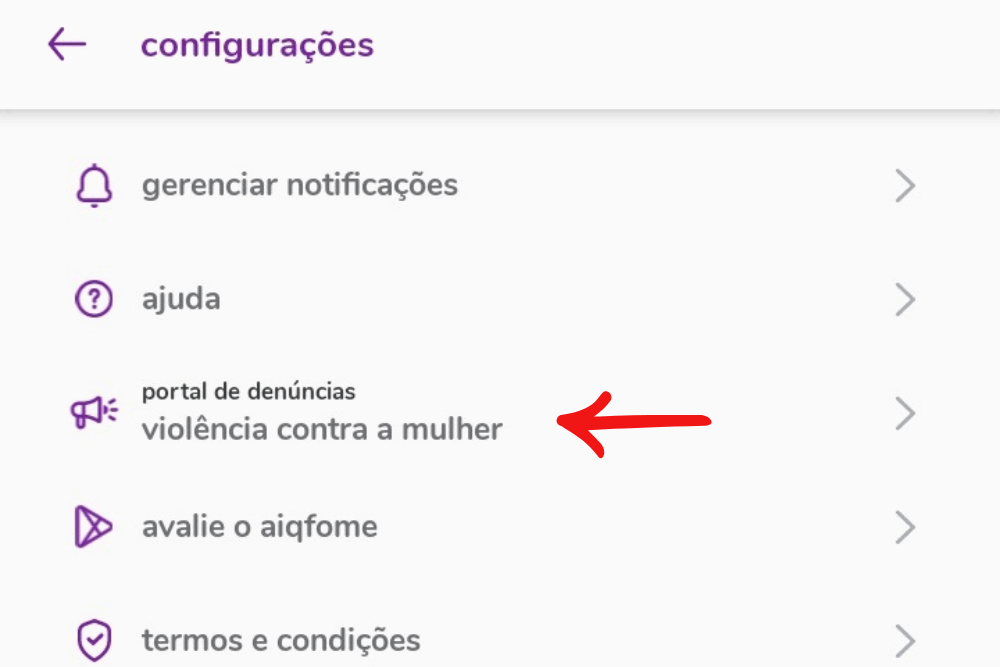 A funcionalidade faz parte de uma iniciativa do Grupo Magalu e surgiu a partir de uma ação interna de conscientização pelo fim da violência contra a mulher. Em um alinhamento de cultura, agora também está disponível no Aiqfome, dando acesso a um portal que encaminha vítimas e denunciantes a canais especializados.