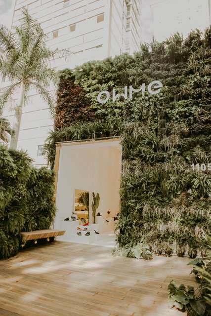 A atmosfera da loja foi pensada para estimular os sentidos. O espaço tem um jardim vertical, fachada convidativa e área de bem-estar. Em parceria com a Almanati, marca de cosméticos naturais, oferecerá às clientes que efetuarem compras um escalda-pés. Além disso, será oferecido às clientes o Text-drive, em que, por meio do download prévio do aplicativo da marca, será permitido sair caminhando durante uma hora com um dos quatro modelos de saltos especiais da OWME.