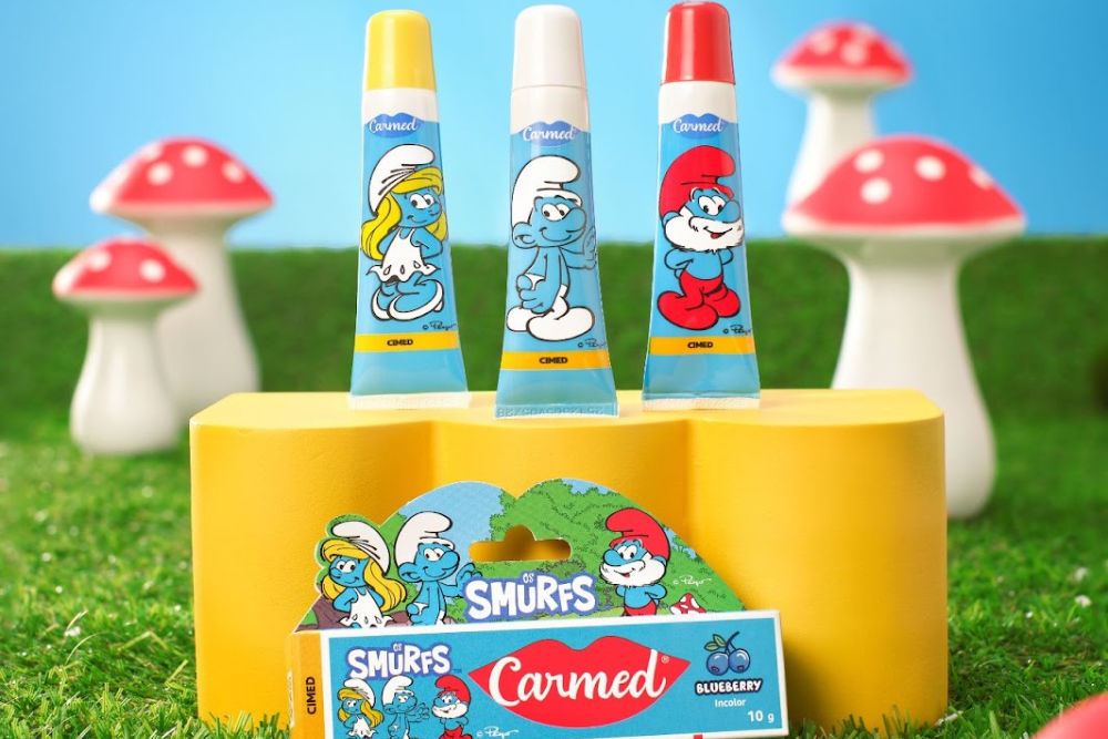 A collab entre Carmed e os personagens azuis da animação dos anos 1990 trouxe um novo formato que prevê forte engajamento com o consumidor final, ao unir memória afetiva, coleção e fator surpresa. Com três versões inspiradas nos personagens Smurf, Papai Smurf e Smurfette, o personagem de cada unidade só é revelado após a abertura da caixinha, que chega lacrada às farmácias. Essa mecânica despertou o interesse do público e impulsionou a demanda no ponto de venda.