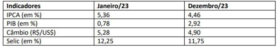 Só como exemplo comparemos os dados previstos no início e no final do ano de 2023.