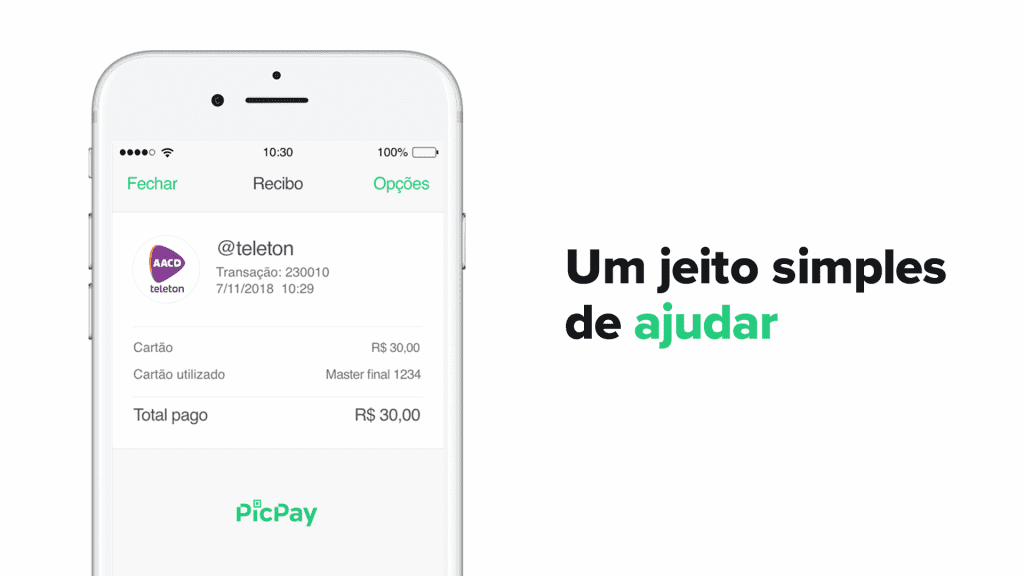 “Estamos inserindo um ‘botão de doar’ na televisão de cada brasileiro”, explica o diretor de Negócios do PicPay, Diogo Roberte. “Não será preciso decorar ou anotar números de telefone, enviar mensagens, contar com intermediadores, nem repassar dados. Oferecemos um canal simples e rápido para ajudar uma nobre causa, como a da AACD”. Único aplicativo dentre os meios de doação para a campanha, mesmo sem o QR Code, os usuários do PicPay já podem pesquisar por @teleton no app e fazer sua contribuição.