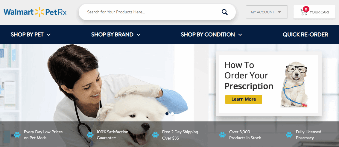 O Walmart também lançará uma farmácia online para animais de estimação, a WalmartPetRX.com, concorrendo com outras, como a PetSmart, a Chewy.com. O varejista informou que oferecerá prescrições de baixo custo de 300 marcas para cães, gatos, cavalos e gado.