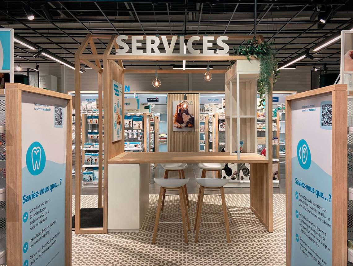 A loja oferece uma experiência imersiva com serviços exclusivos, como tosa e um Cantinho de Carnes focado no BARF, criando um local único para donos de animais de estimação.