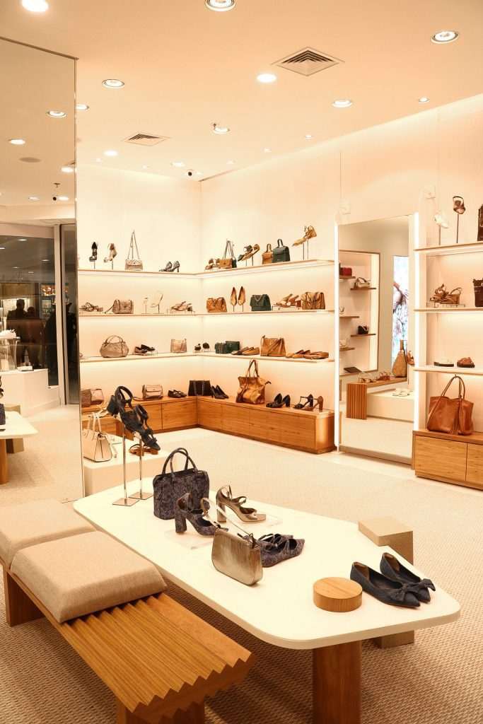 A partir de uma estética clean, com madeira, recortes e formas geométricas, o conceito visual representa o DNA fresh e bold da marca. Além disso, a iluminação das unidades foi criada para colocar os sapatos e acessórios como os grandes protagonistas da loja.