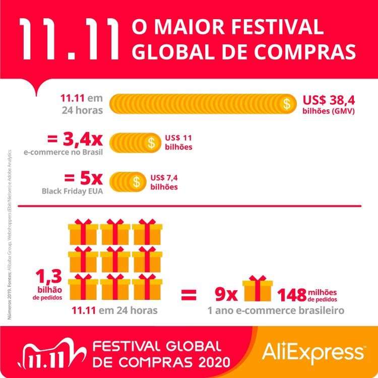 A partir das 5h da próxima quarta-feira,  11 de novembro, terá início o festival global de ofertas 11.11, que o AliExpress, maior site de compras internacionais do mundo, promove também no Brasil. A ação foi criada originalmente na China pelo grupo Alibaba, ao qual o AliExpress pertence. Os preços especiais, válidos até às 4h59min do dia 13 de novembro, são até 70% mais baratos que em períodos comuns e reúnem itens de marcas como Xiaomi e Apple.