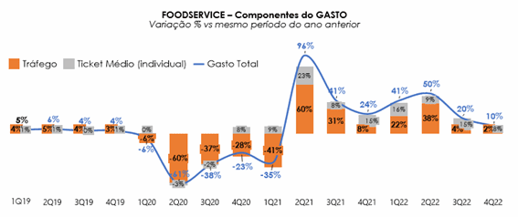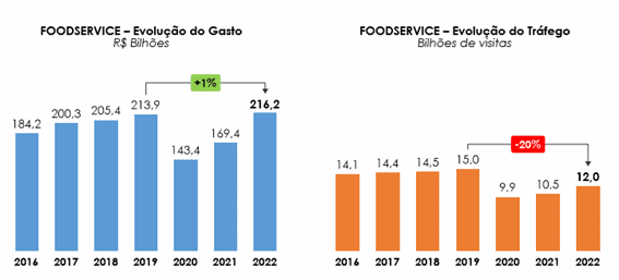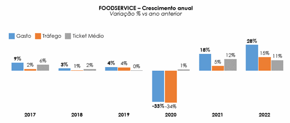 Em 2022, o foodservice brasileiro atingiu um gasto total de R$ 216,2 bilhões, recorde histórico, e 28% acima do verificado em 2021, impactado principalmente pelo tráfego, que cresceu 15% em relação àquele ano. Resultado robusto e importante para o setor.