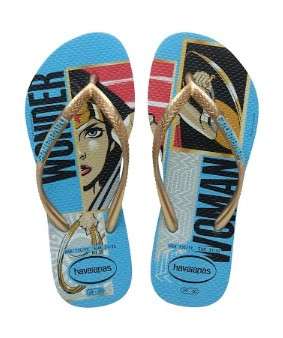 Além dos modelos inéditos da versão adulta, a linha Kids também ganhou a renovação de estampa com um novo modelo Havaianas Kids Slim Mulher-Maravilha. Os produtos custam de R$ 37,99 a R$ 47,99 e estão à vendas nas lojas Havaianas e no e-commerce da marca.