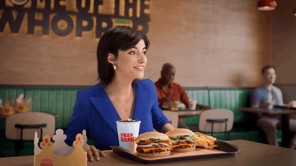 A campanha, idealizada pela agência David, amplifica a promoção do sanduíche e traz o contraste entre a maior influenciadora virtual do País e o cardápio real do Burguer King, que é quase 100% composto de insumos livres de conservantes, corantes e aromatizantes artificiais, enfatizando a missão da marca com práticas ESG. As peças começaram a ser divulgadas na quarta-feira, 10, na TV, redes sociais, canais digitais e OOH.