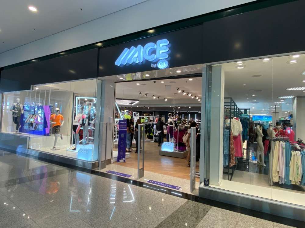 A loja conta com uma vitrine tecnológica com comunicação em led e manequins com looks para a prática esportiva. Na parte interna, mais de 250 m² estão reservados somente para ACE, com mobiliário e identidade visual característicos, painéis temáticos e instagramáveis. Os espaços são divididos por modalidades esportivas, como ioga, pilates, corrida, ciclismo, fitness e beach sport. O espaço tem provador, caixa de atendimento e self-checkout.