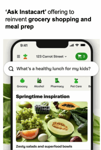 Interface do aplicativo móvel do Instacart conta com a funcionalidade do ChatGPT integrada ao seu sistema