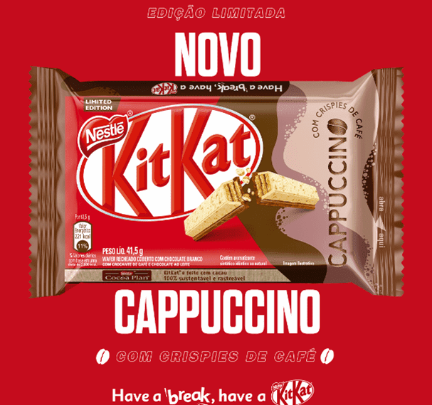 Visando explorar o mercado brasileiro, a Nestlé lançou uma nova edição limitada com sua marca KitKat, a barra agora estará disponível também no sabor Cappuccino. A marca explicou que essa foi uma novidade pensada nos amantes da marca e do chocolate e que agrade todo o público. A novidade estará disponível nas lojas de todo o país a partir desse mês de junho.