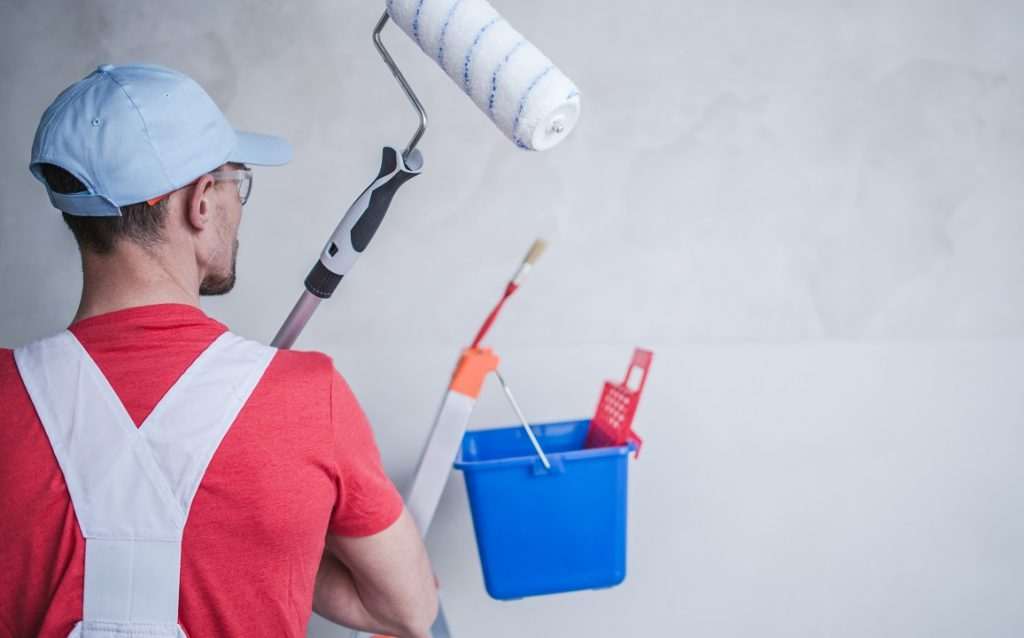 Interior Remodeling and Painting by Caucasian Remodeling and Construction Worker.