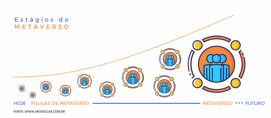 Mesmo com players como Nike, Facebook, Microsoft, Fortnite e Roblox já experenciando esse novo contexto, a tendência é o metaverso existir como pílulas de desenvolvimento, micrometaversos, experiência híbridas que serão estabelecidas e isso tudo vai se fundir em macrometaverso (ou macrometaversos).