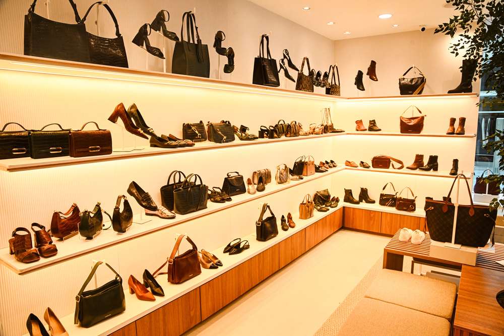 O conceito visual representa o DNA fresh e bold da marca, que traz para os espaços físicos madeira, recortes e formas geométricas, elementos presentes em suas coleções, campanhas e comunicações. A iluminação é o grande destaque do projeto, criada para colocar os sapatos, bolsas e acessórios como os grandes protagonistas.