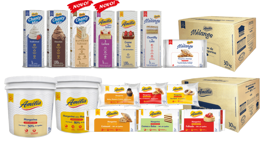 A marca Amélia, conhecida por confeiteiros, também foi repensada e teve portfólio expandido com o objetivo de consolidar-se como “marca especialista em confeitaria”, com o conceito “A magia da confeitaria, o segredo do resultado”.