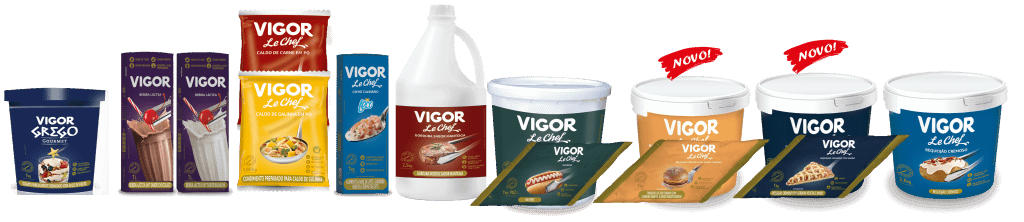 Abaixo da marca Vigor Profissional, a companhia lança a linha Vigor Le Chef, especializada em culinária para profissionais, com portfólio composto por maionese, requeijão, cremes culinários, caldos e outras opções para o Food Service.