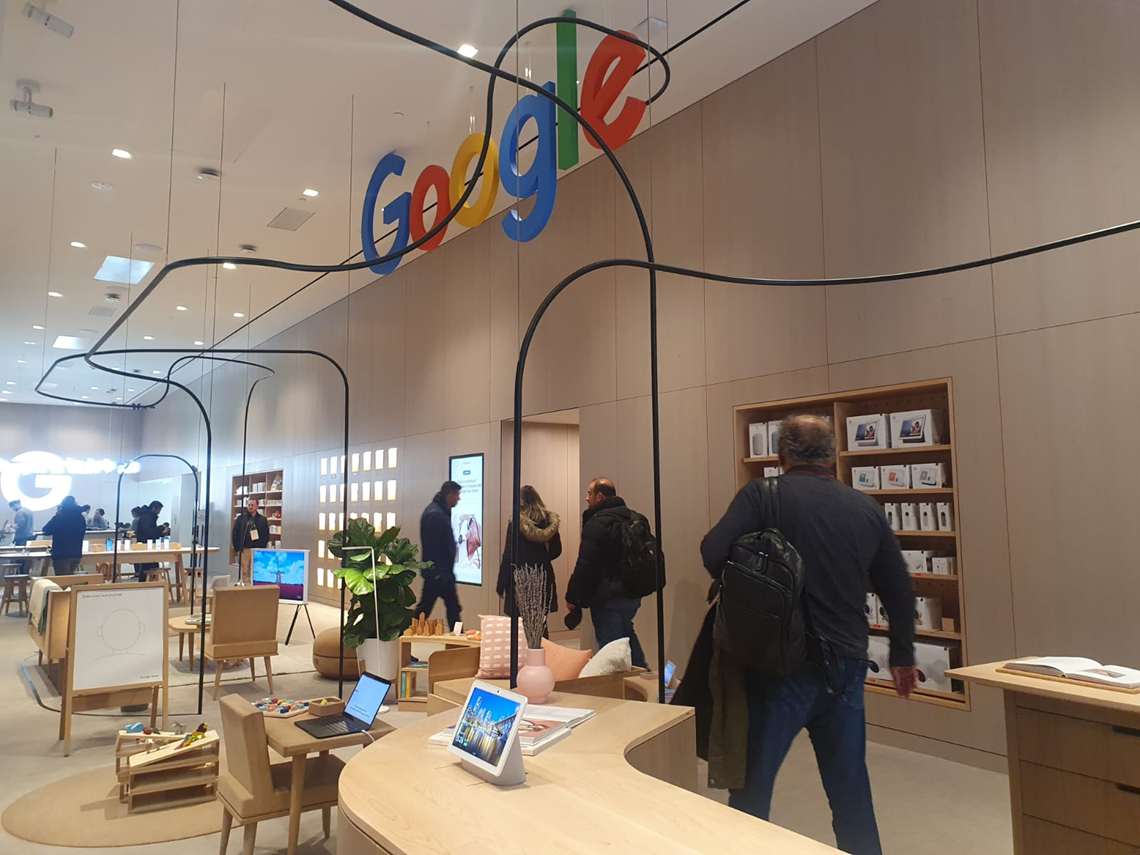 As lojas têm um ambiente aconchegante, todo de madeira e com pufes, lounges e tons pastéis. A atmosfera clean tem por trás a intenção de se criar um ambiente para o consumidor passar um tempo. A ideia do Google é que ele se sinta em casa e veja como é o dia a dia usando os produtos e serviços da marca.