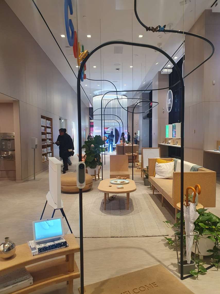 As lojas têm um ambiente aconchegante, todo de madeira e com pufes, lounges e tons pastéis. A atmosfera clean tem por trás a intenção de se criar um ambiente para o consumidor passar um tempo. A ideia do Google é que ele se sinta em casa e veja como é o dia a dia usando os produtos e serviços da marca.