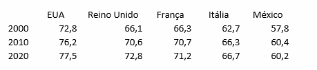 Numa amostra entre países, considerando a evolução dos serviços no PIB nos últimos 20 anos, fica claro o aumento de participação.