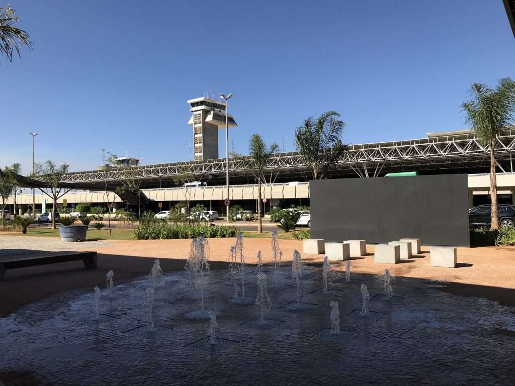 Uma praça com mesas de trabalho de ferro, bancos de descanso com tomada para carregar o celular e parquinho para crianças, rodeada por cafés, lanchonetes e restaurantes, tudo os sob ipês amarelos típicos de Brasília. Assim é o espaço de conveniência e mobilidade instalado no Aeroporto Internacional de Brasília, que tem vias exclusivas para carros chamados por aplicativo e para vans de locadoras e que, nos próximos meses, vai passar a abrigar marcas multinacionais como Starbucks e Dunkin’.