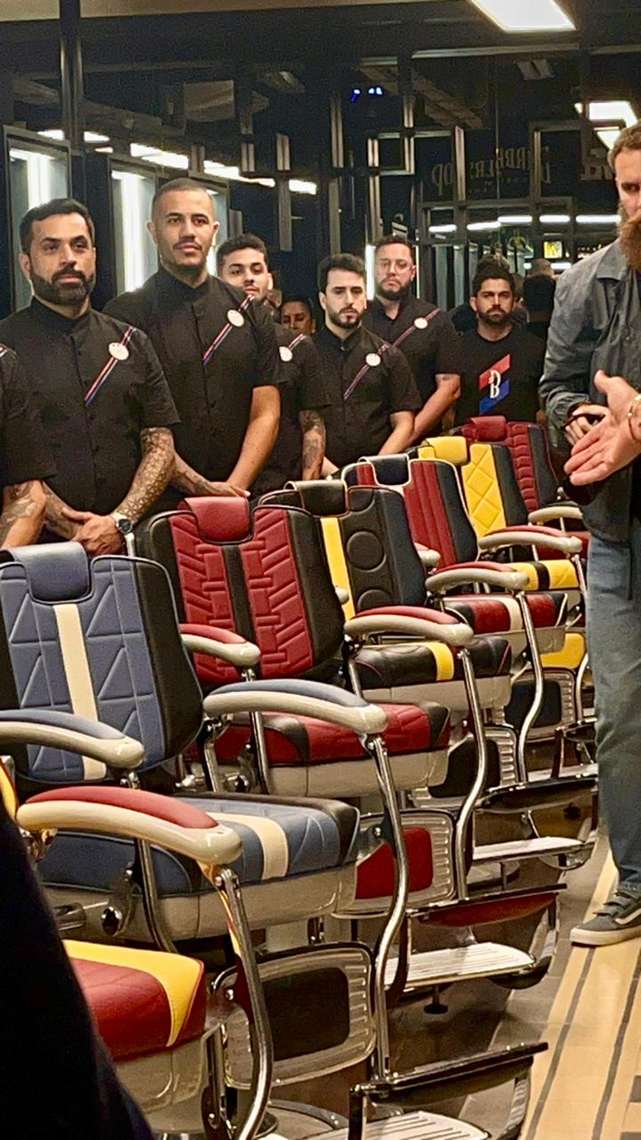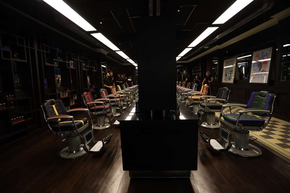 O local possui 450 m², 18 cadeiras e capacidade para atender mais de 250 clientes por dia. O projeto, assinado pelo escritório de arquitetura Superlimão, inclui serviços de corte de barba e cabelo, disfarce de cabelos brancos, depilação de nariz e orelha, além de hidratação e massagem capilar. Os preços começam em R$ 100.