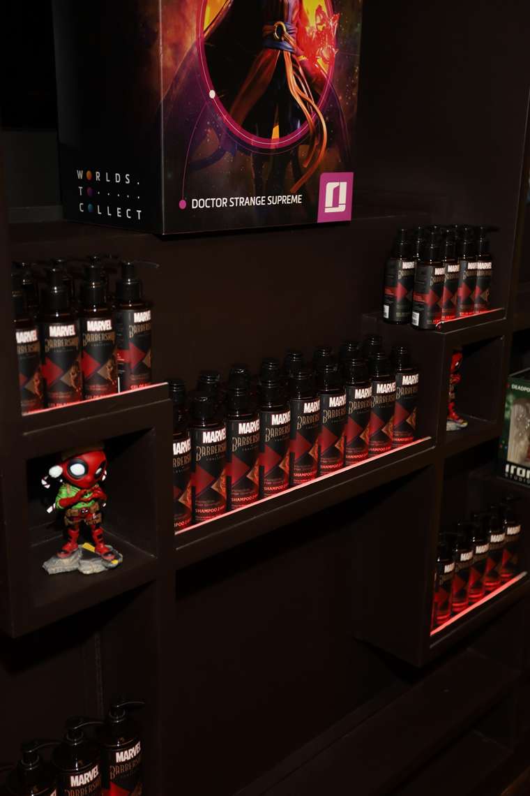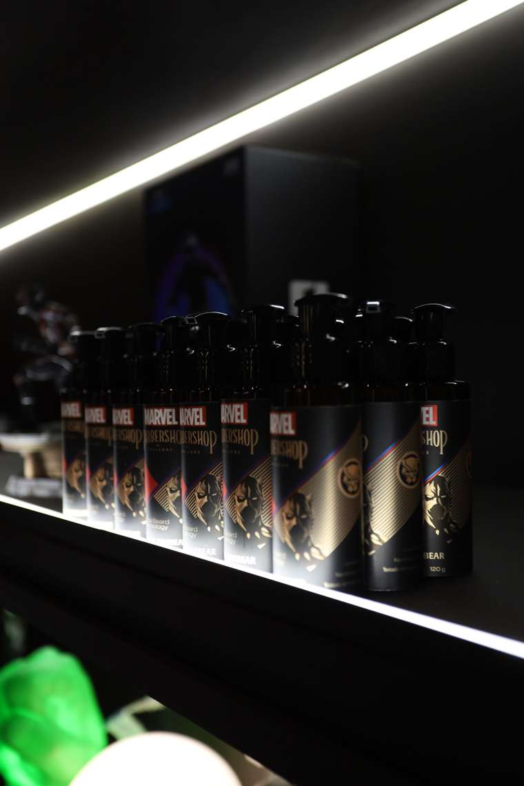 Além dos serviços, o espaço conta com uma linha de produtos próprios com temática dos super-heróis, composta por shampoo, condicionador, sabonete líquido facial, pomada, cera de cabelo, gel de barbear, pós-barba e óleo de barba.
