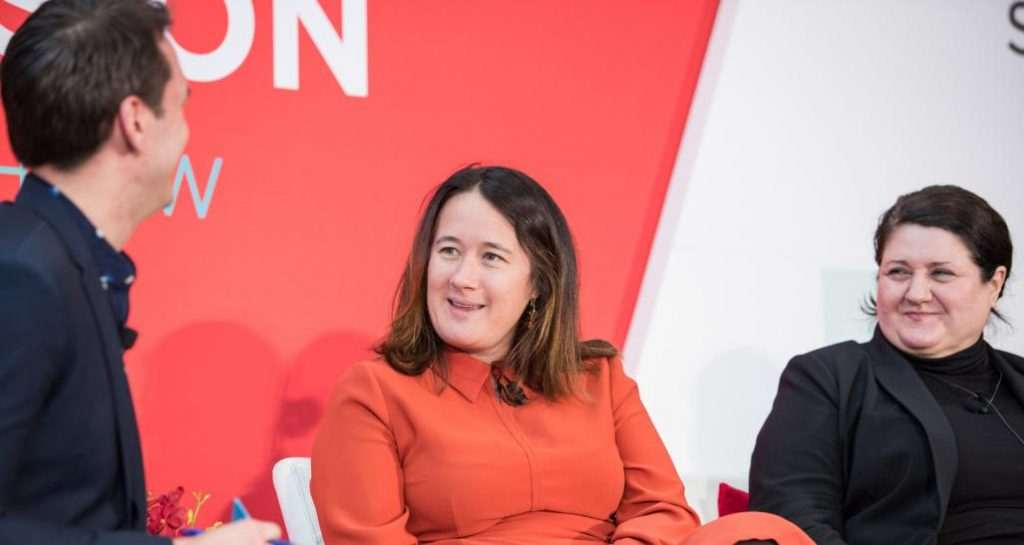 Alexandra Waldman, co-fundadora e diretora criativa da Universal Standard, também participou da conversa, moderada por Chip Cutter, repórter do Wall Street Journal.