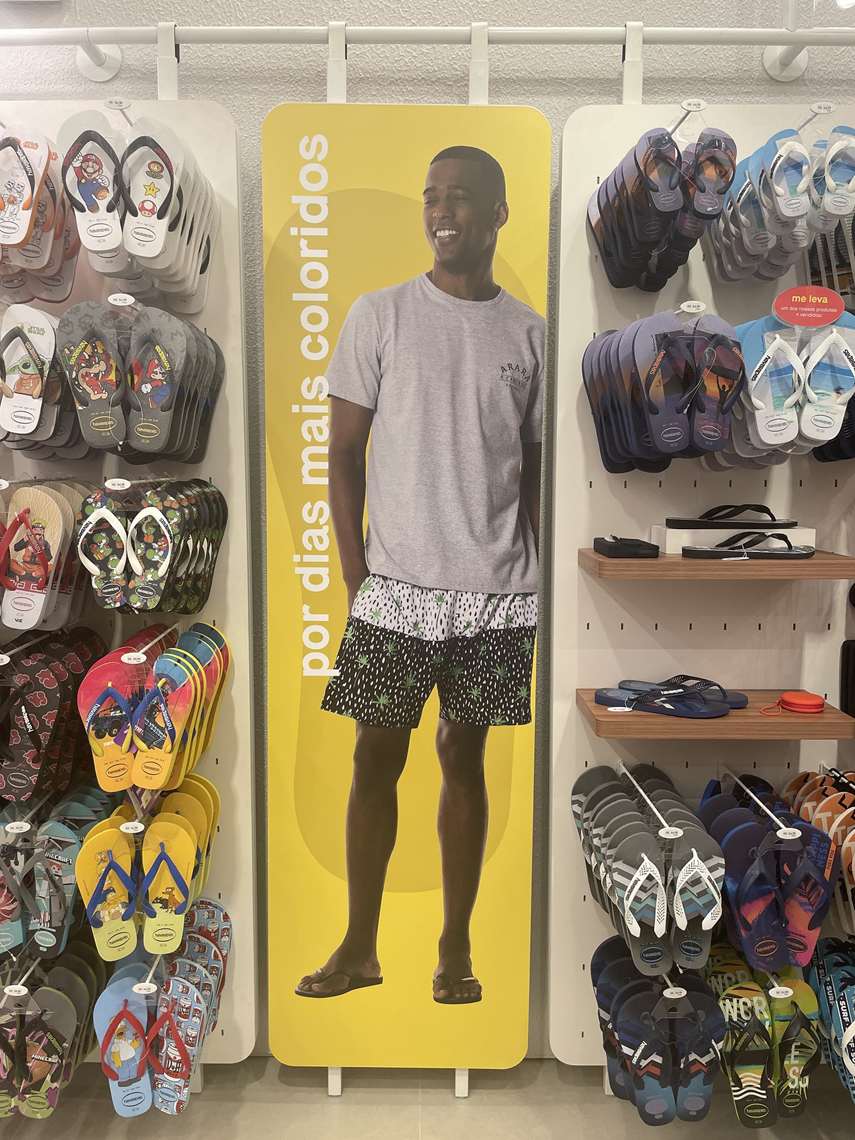 A loja trará toda a linha das sandálias de dedo, de calçados fechados Espadrilles e mules e modelos do tênis Havaianas TNS. O espaço também possui opções para bebês e crianças, com estampas de super-heróis e personagens da Disney, além de acessórios como bolsas, mochilas e porta-fones.