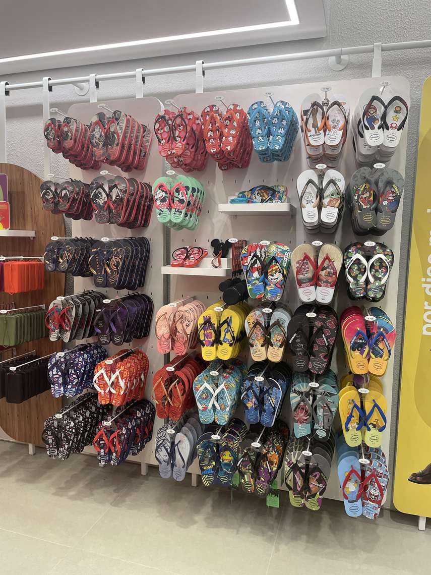 A loja trará toda a linha das sandálias de dedo, de calçados fechados Espadrilles e mules e modelos do tênis Havaianas TNS. O espaço também possui opções para bebês e crianças, com estampas de super-heróis e personagens da Disney, além de acessórios como bolsas, mochilas e porta-fones.