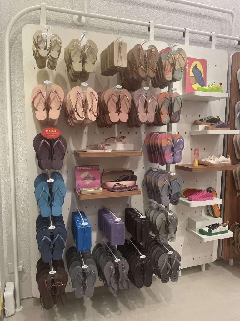 A loja trará toda a linha das sandálias de dedo, de calçados fechados Espadrilles e mules e modelos do tênis Havaianas TNS. O espaço também possui opções para bebês e crianças, com estampas de super-heróis e personagens da Disney, além de acessórios como bolsas, mochilas e porta-fones.