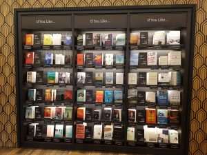 Toda a organização da loja é influenciada pela capacidade de coletar e analisar dados do comportamento de consumo dos clientes, permitindo assim uma nova lógica de loja que ajuda os consumidores a explorar e descobrir novos livros. A própria disposição dos produtos ajuda nesse sentido, uma vez que os livros são exibidos com suas capas para frente, assim como seria no ambiente online. O espaço conta também com um sortimento claramente reduzido, tendo cerca de apenas 10 a 20% dos SKUs que seriam encontrados em uma livraria tradicional. A curadoria e a forma de organizar a loja ajudam o cliente na exploração e contam com categorias que só uma empresa de dados poderia fazer, como as sessões de “se você gostou desse livro, também vai gostar desses” ou “os livros que os leitores do Kindle terminaram em menos de 3 dias” ou, até mesmo, os livros mais populares no entorno da loja, excluindo os best-sellers.