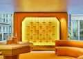 “Da grande escadaria em formato de octógono ao uso de veludo acolchoado e seda em toda a loja, todos os detalhes têm como objetivo proporcionar aos clientes a sensação de estar dentro de uma luxuosa caixa de joias. Minha visão era produzir um design moderno, alegre, elevado e futurista que espelhasse a luz, a energia e as cores de Nova York.”
